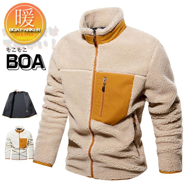 ボアジャケット メンズ フリースコート ボアパーカー ボア フリース アウター 裏ボア 冬 冬服 保温性 暖かい ブルゾン 防寒 おしゃれ 無地