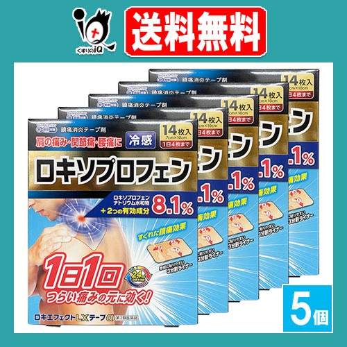 【第2類医薬品】★ロキエフェクトLXテープα 14枚入×5個セット【大石膏盛堂】肩の痛み、関節痛、腰痛に 冷感タイプ 1日1回つらい痛みのもとに効く! 24時間効果を持続 すぐれた鎮痛効果 ロキソプロフェン テープ剤 シップ 湿布 外用鎮痛消炎薬 消炎鎮痛テープ剤