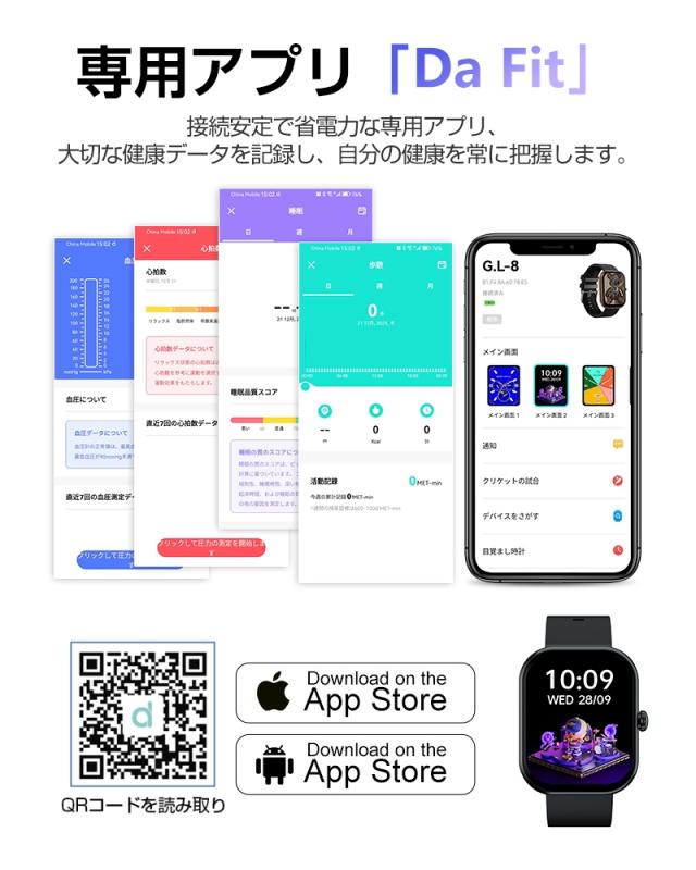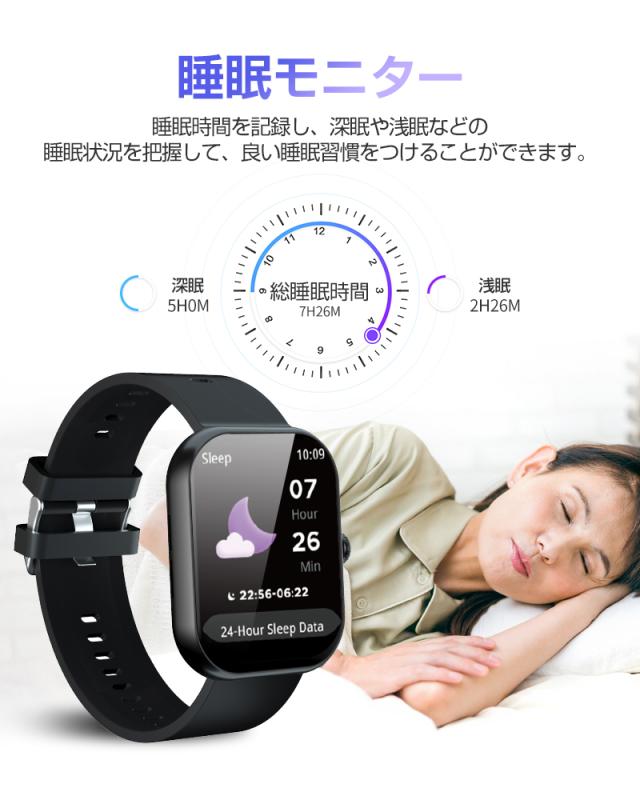 - 以前、別のスマートウォッチを購入したのは、使い方がよく分からず(充電ができなくなった?)、今回もちょっと不安に思いながら購入しましたが、スムーズに使用できてます! 血圧計や歩数計、睡眠時間などが分かる...