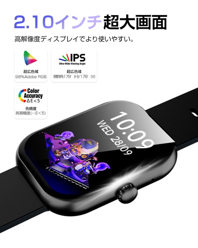 スマートウォッチ Bluetooth5.3通話機能 2.10インチ大画面 血圧測定 血中酸素濃度測定 スマートブレスレット 腕時計 歩数計 心拍数計 【PL保険加入済み製品・安心】