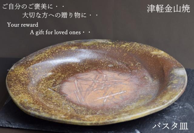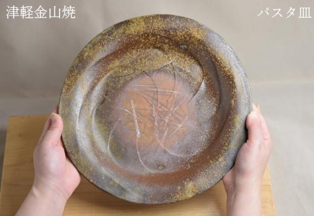 津軽金山焼 焼き締め 陶器 皿 パスタ皿 送料無料