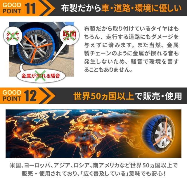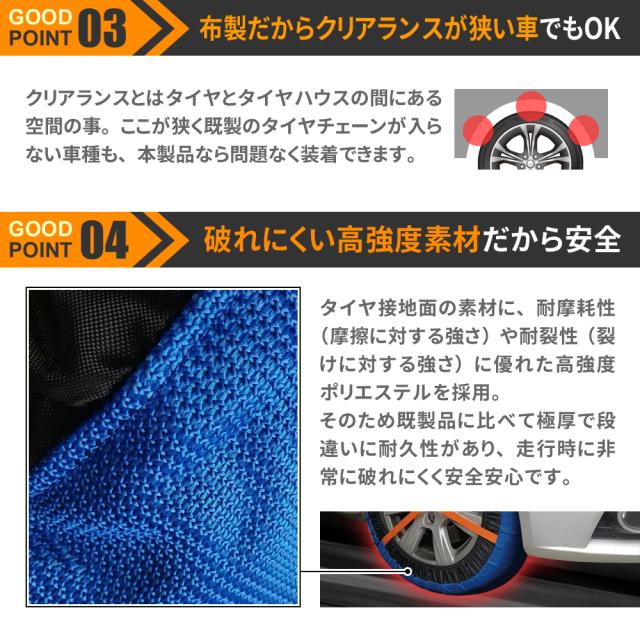 タイヤチェーン 布製 非金属 チェーン規制 対応 タイヤソックス スノーソックス オートソック 布製タイヤチェーン 簡単装着 滑り止め すべり止め 2個セット