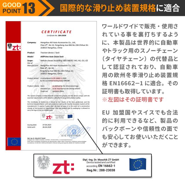 18年12月よりタイヤの「チェーン規制」制度がスタートし、規制区間でのチェーンの装着が義務化されました。本製品は規制時も問題なく使用いただけます。