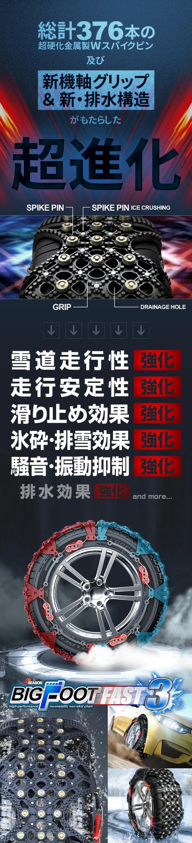 スパイクピン+グリップとラバーネットが導く、雪道走行の究極理想形。