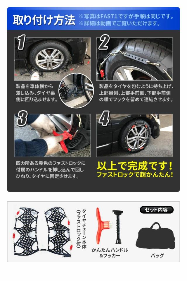 タイヤチェーン 非金属 簡単 チェーン規制 対応 取付簡単 非金属タイヤチェーン 騒音 振動 改善版 ジャッキアップ不要 非金属チェーン