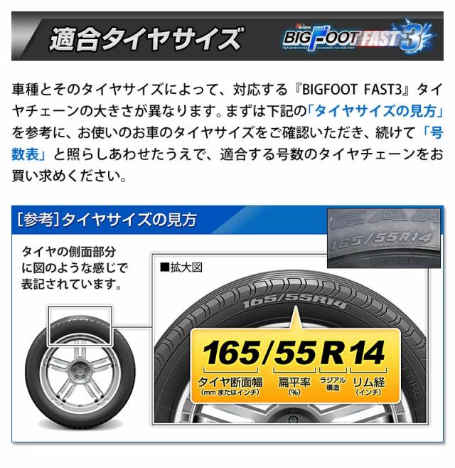 ・必ず駆動輪へ取り付けてください。FF車は前輪・FR車は後輪・4WD車は車両の取扱説明書に従ってください。