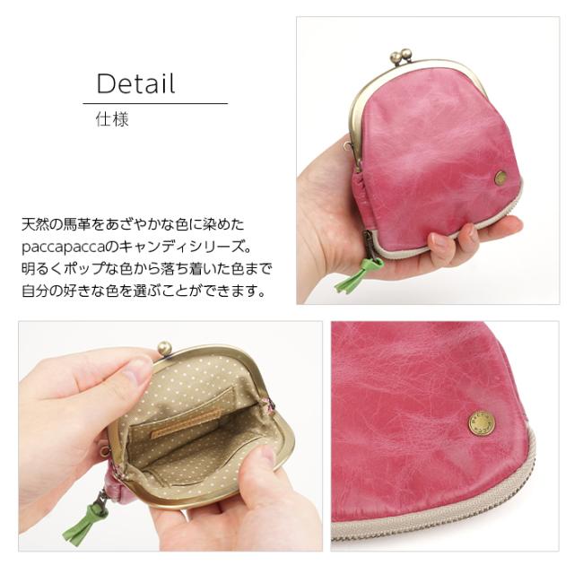 多機能がま口ケース カード入れ カードケース 小銭入れ コインケース マルチケース レディース 本革 日本製 馬革 両面 定期入れ 軽量 軽い pacca pacca キャンディ【一粒万倍日】
