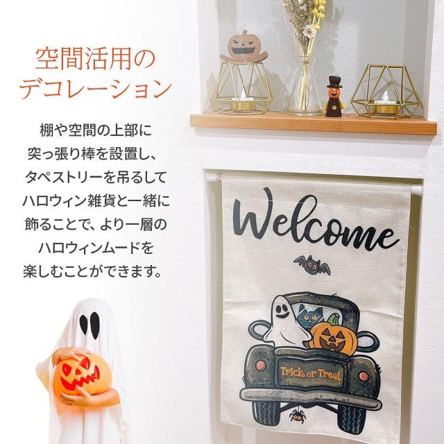 ミニハロウィンタペストリー おばけ 黒猫 かぼちゃランタン トラック ホームデコレーション ウォールアート インテリア ホリデー デザイン ハンギング agesugi_sog