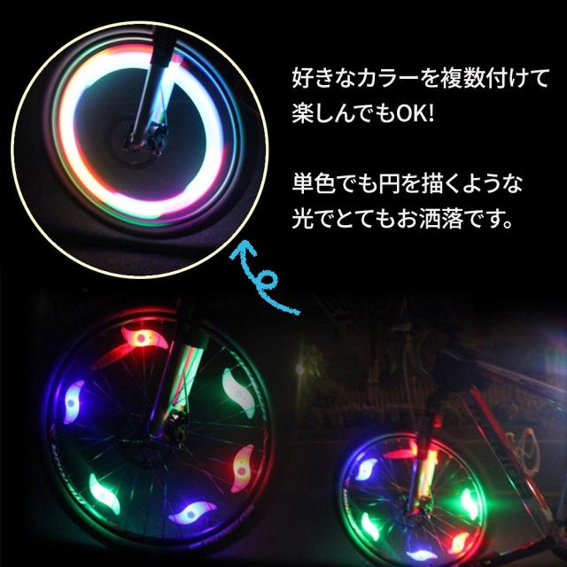 自転車 スポーク用 LEDライト 同色2個セット 夜間ライト 自転車用ライト ホイールライト おしゃれ 安全 デコレーションライト 光る 夜道 明るい 装飾ライト agesugi_ssp
