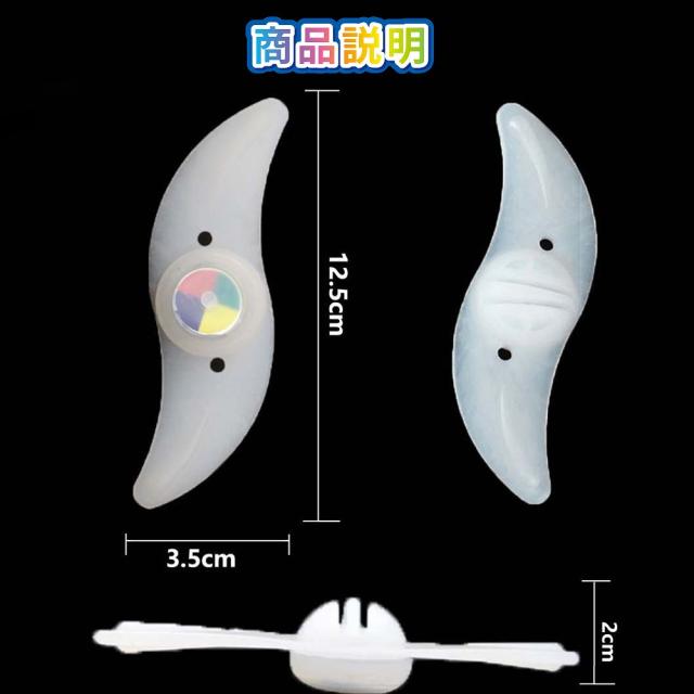 | 主な仕様 | 商品サイズ:高さ12.5cm×幅3.5cm 重量:約35g 材質:ABS カラー:グリーン・ブルー・レッド・レインボー セット内容:2個セットでお届け 電池交換の際はボタン電池CR2032をご使用ください。 |
