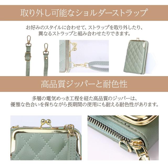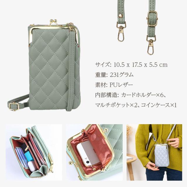| 主な仕様 | サイズ: 10.5cm x 17.5cm x 5.5cm 素材: PUレザー カラー: ベージュ/グリーン/ブルー/ブラック/ブラウン 内部構造: カードホルダー、紙幣ホルダー、スマホホルダー 重量: 約231g |