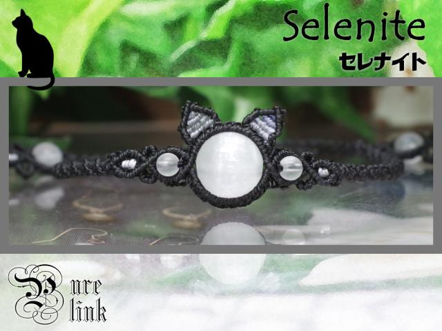 猫耳!?白銀の光を放つ癒しの魔石『セレナイト』マクラメ編みネコブレスレット