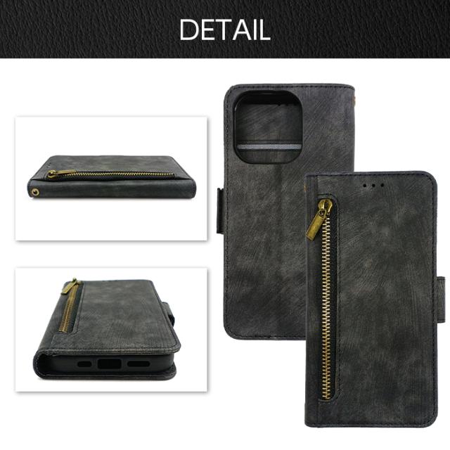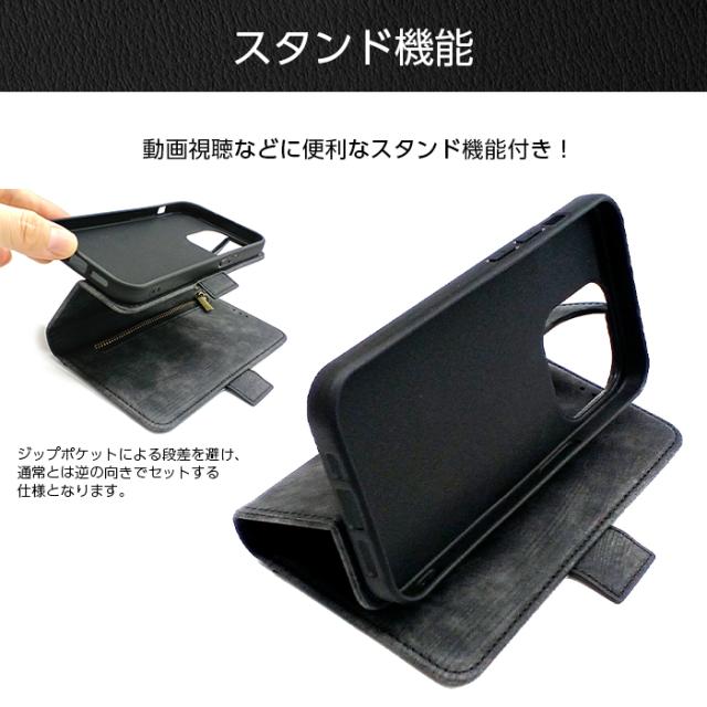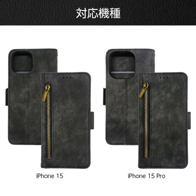 iPhone 15 Pro iPhone15 ケース 手帳型 ジップポケット付き iPhone15Pro カバー 小銭入れ コインケース 手帳型ケース 手帳 カードポケット マグネット ブラック