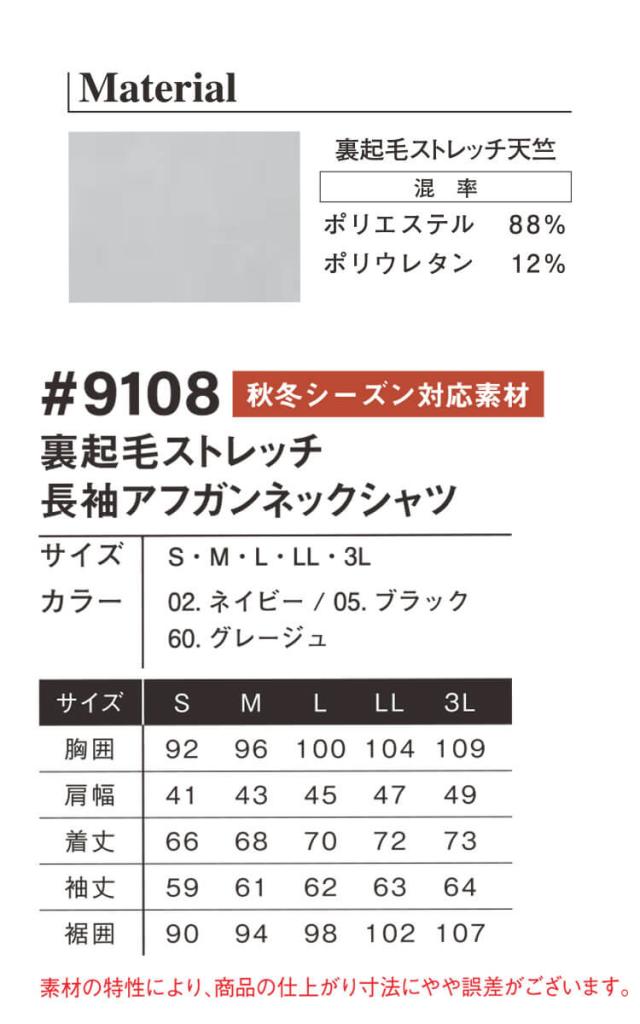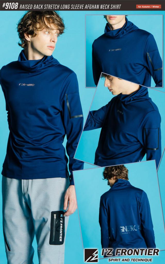 アイズフロンティア IZ FRONTIER 裏起毛ストレッチ長袖アフガンネックシャツ 9108 秋冬