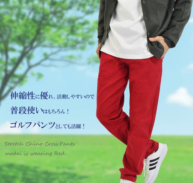 チノパン メンズ 綿 ストレッチ ストレッチパンツ 裾上げ 綿パン カラーチノ カラーパンツ チノパンツ 伸びる ズボン 赤 黒 白 ゴルフパンツ レギュラー チノ ストレートパンツ 伸縮性 無地パンツ ゴルフウェア YKKファスナー 前開き 裾上げ済み 送料無料 春 夏 秋 冬 新作