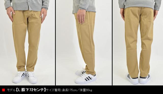 ■薄すぎず、厚すぎず、ちょうど良い質感なので、春、夏、秋、冬とオールシーズン着用可能な伸縮性のあるチノパンツです。