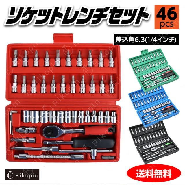 【当社だけ】ラチェットレンチ ソケットレンチ 46点 ラチェットハンドル 1/4 6.35mm サイズ ドライバー 工具 スパナ DIY