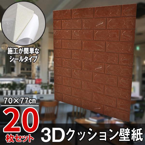 20枚セット レンガ調 3Dクッション 3D壁紙 3D立体壁紙 DIY レンガ調壁紙シール 70cm×77cm DIY立体壁紙 レンガ 防音シール ウォールステッカー 3D 壁紙 軽量 レンガシール 壁紙シール 自己粘着 防水 断熱 北欧 タイル グレー