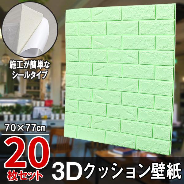 20枚セット レンガ調 3Dクッション 3D壁紙 3D立体壁紙 DIY レンガ調壁紙シール 70cm×77cm DIY立体壁紙 レンガ 防音シール ウォールステッカー 3D 壁紙 軽量 レンガシール 壁紙シール 自己粘着 防水 断熱 北欧 タイル ミントグリーン