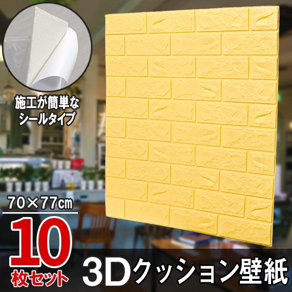 10枚セット レンガ調 3Dクッション 3D壁紙 3D立体壁紙 DIY レンガ調壁紙シール 70cm×77cm DIY立体壁紙 レンガ 防音シール ウォールステッカー 3D 壁紙 軽量 レンガシール 壁紙シール 自己粘着 防水 断熱 北欧 タイル イエロー 黄