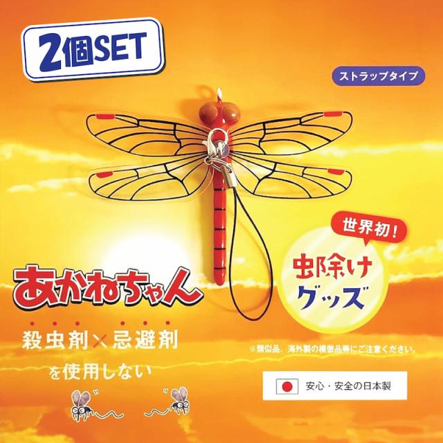 【あかねちゃん ストラップタイプ】 2個セット おにやんま君 虫よけ 正規品 オニヤンマ 虫除け 蚊よけ 【日本正規品】蚊よけ おにやんま君 虫予防 対策 レジャー キャンプ 釣り BBQ アウトドア用品