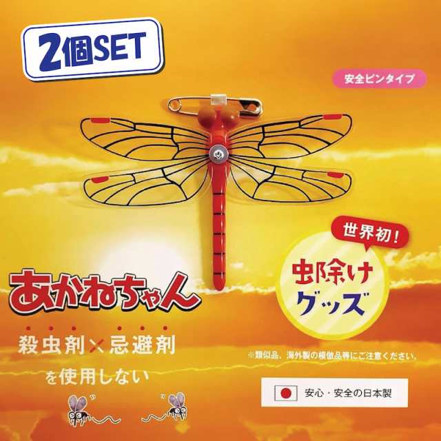 【あかねちゃん 安全ピンタイプ】 2個セット おにやんま君 虫よけ 正規品 オニヤンマ 虫除け 蚊よけ 【日本正規品】蚊よけ おにやんま君 虫予防 対策 レジャー キャンプ 釣り BBQ アウトドア用品