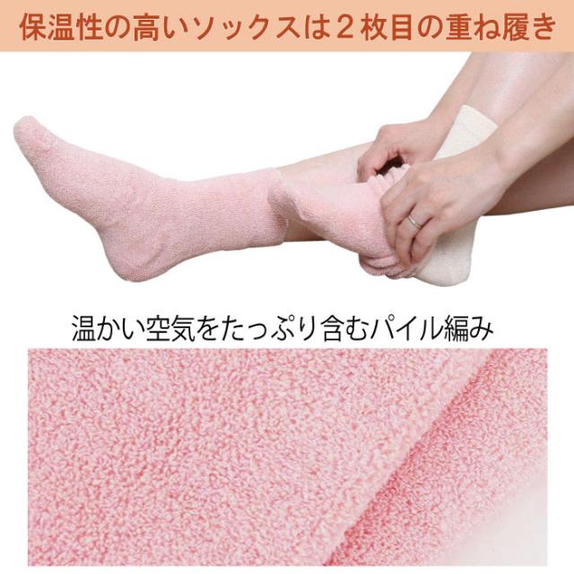 1、5本指ソックスを履く⇒指汗を吸収する 2、ゆるックスを重ね履き⇒無圧感ソックスで細い足先を効果的に温める ソックス一枚だけでは体熱は繊維を伝わって少しづつ逃げていきます。この放熱をうまく利用したのが重ね履きです。2枚重ねると保温効果がぐんと高まり、冷えた足を効率よく温めます。 | ||