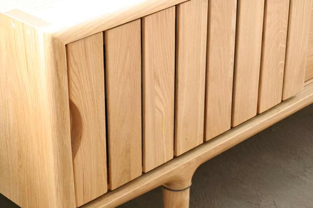 オーク無垢材を使用したテレビボードです。天然木ならではの優しくあたたかみのある雰囲気で、どんなお部屋にも馴染んでくれます。飽きの来ない自然の質感を活かしたデザインで、永くお使いいただけます。