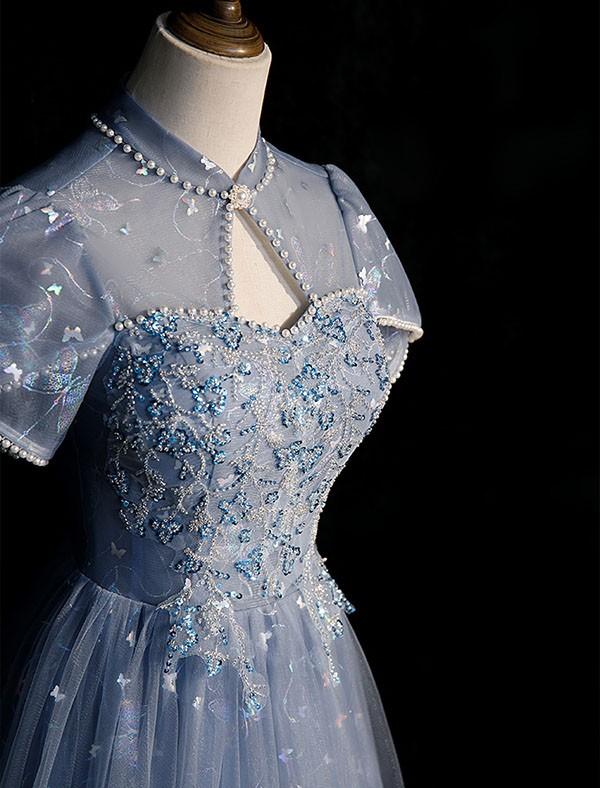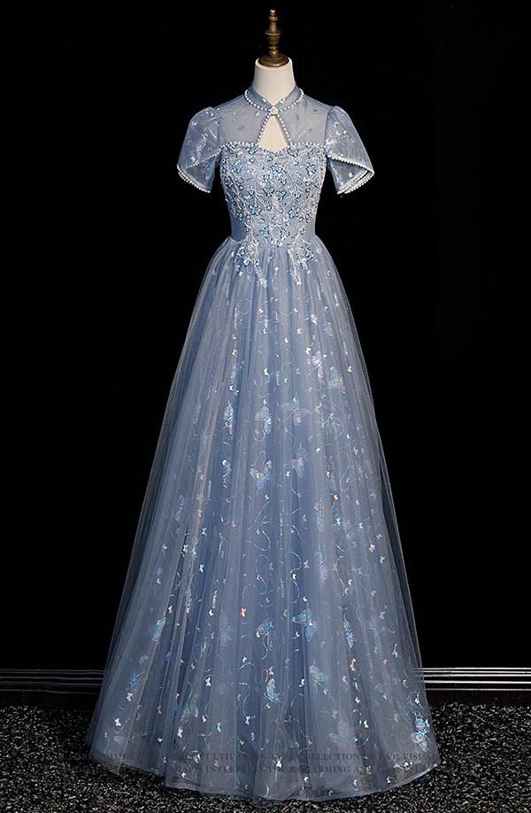 演奏会用ドレス 大人 ピアノ 発表会 ロングドレス 母親 結婚式 イブニングドレス ウエディング 二次会 大きいサイズ エレガント ステージドレス パーティードレスブ Aライン 披露宴 プリンセスライン 青 ファスナー XS S M L LL 3L 4L dr140t2t2l9