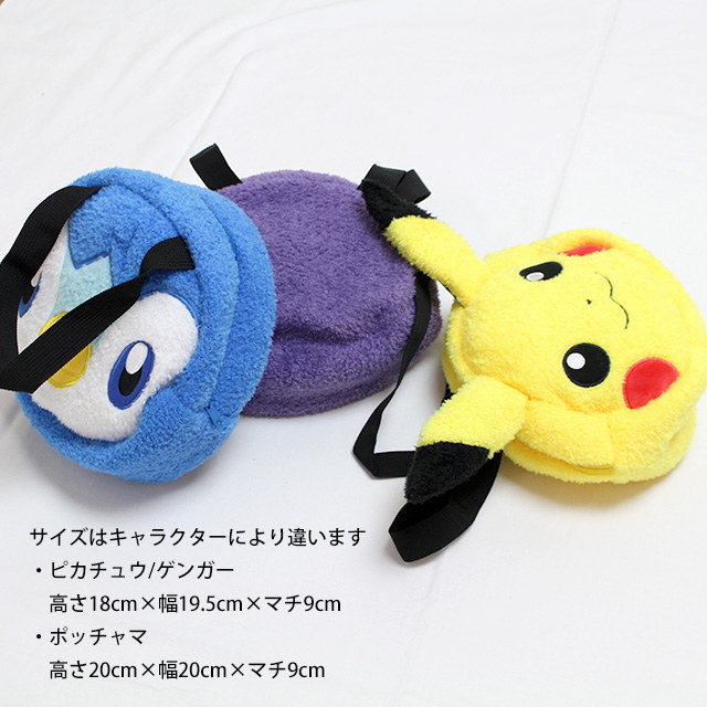| サイズ | サイズはキャラクターにより違います ・ピカチュウ/ゲンガー 高さ18cm×幅19.5cm×マチ9cm ・ポッチャマ 高さ20cm×幅20cm×マチ9cm ※ 実寸平置きのサイズとなります。多少の誤差はご了承願います。 |