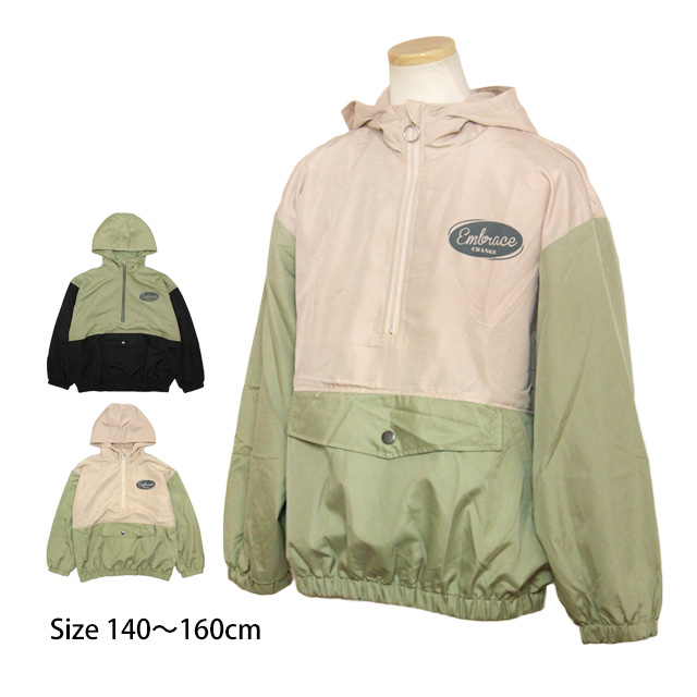 ウィンドブレーカー プルパーカー かぶり フード付き ジャンパー ジュニア 女の子 子供 裏地トリコット アウター 140cm 150cm 160cm