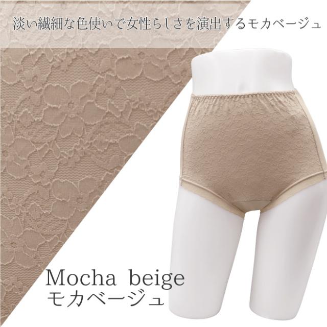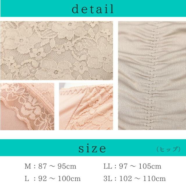 足口部分には幅広レースを使用しており、表にひびきにくい仕様でおしゃれの邪魔をしません。