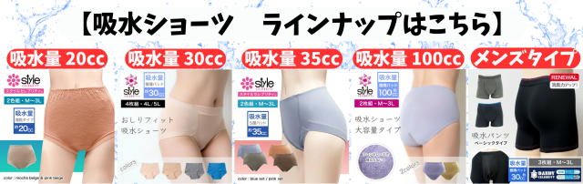 くしゃみをしたとき、重い荷物を持った時、立ち上がった時など、日常生活のなかの、ふとした拍子の「あっ」が気になる方や、吸水ショーツビギナー様向け。