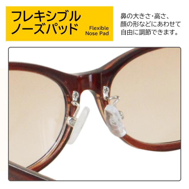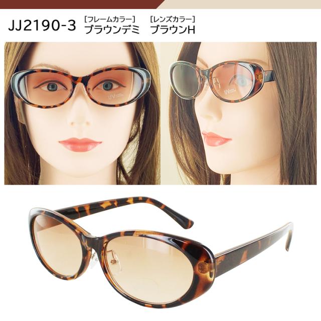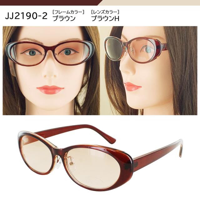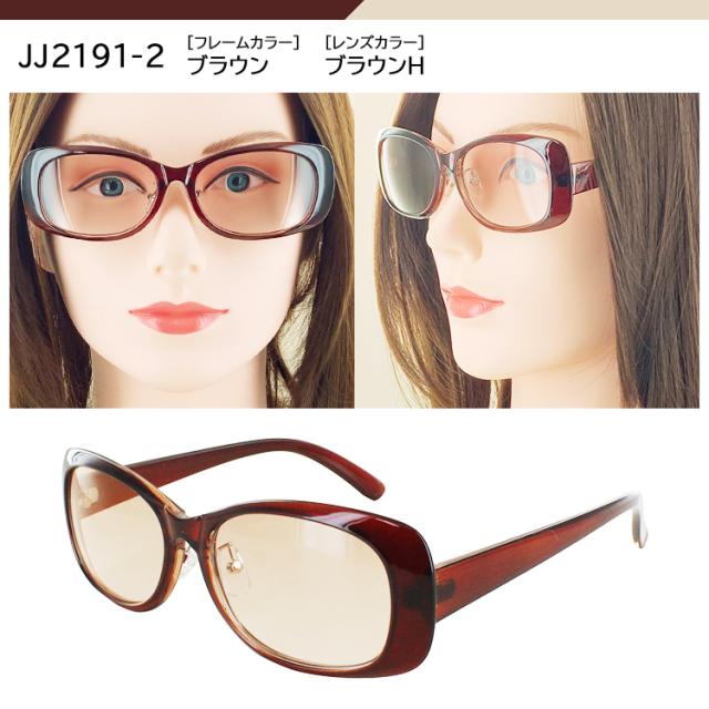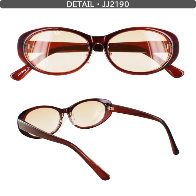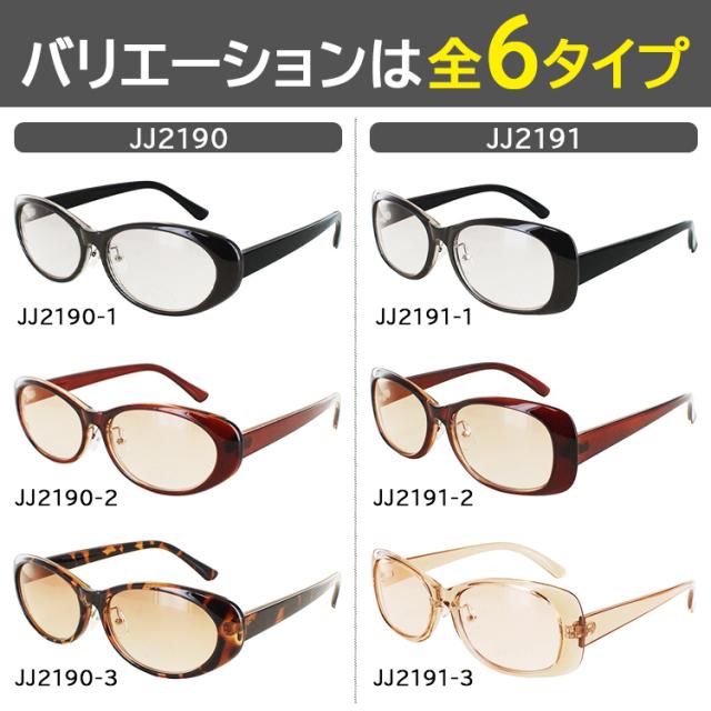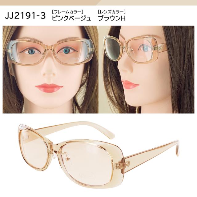 | JJ2190-1 フレーム:ブラック レンズ:スモークH JJ2190-2 フレーム:ブラウン レンズ:ブラウンH JJ2190-3 フレーム:ブラウンデミ レンズ :ブラウンH JJ2191-1 フレーム:ブラック レンズ:スモークH JJ2191-2 フレーム:ブラウン レンズ:ブラウンH JJ2191-3 フレーム: ピンクベージュ レンズ:ブラウンH | ●素材 レンズわく素材:プラスチック テンプル素材:プラスチック レンズ素材:プラスチック ●可視光線透過率 JJ2190-1 75% JJ2190-2 65% JJ2190-3 45% JJ2191-1 75% JJ2191-2 70% JJ2191-3 80% ●仕様 調整可能な鼻パッド UVカット率99%以上 紫外線透過率:1.0%以下 |