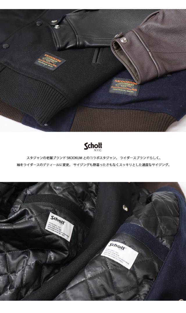 Schott ショット SKOOKUM コラボスタジャン アウター スタジアムジャケット ブルゾン メンズ 送料無料 782-3252016