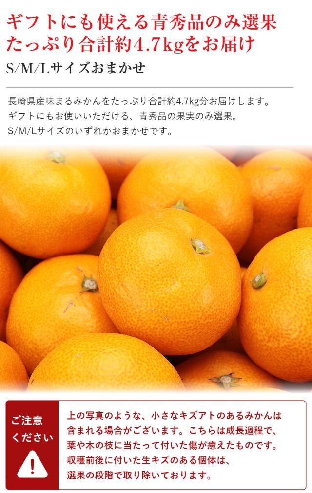 みかん 味まるみかん 糖度12度 4.7kg 長崎県産 青秀品 S/M/Lサイズ JAながさき西海 あじまる 常温便 同梱不可 指定日不可