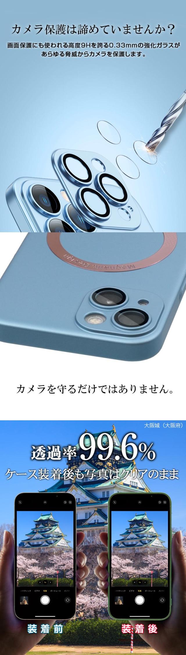 ?カメラレンズ部にガラスフィルムにも使われる硬度9Hの強化ガラスを使用しており、カメラを保護します。