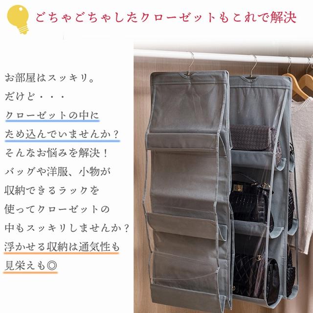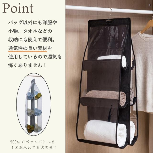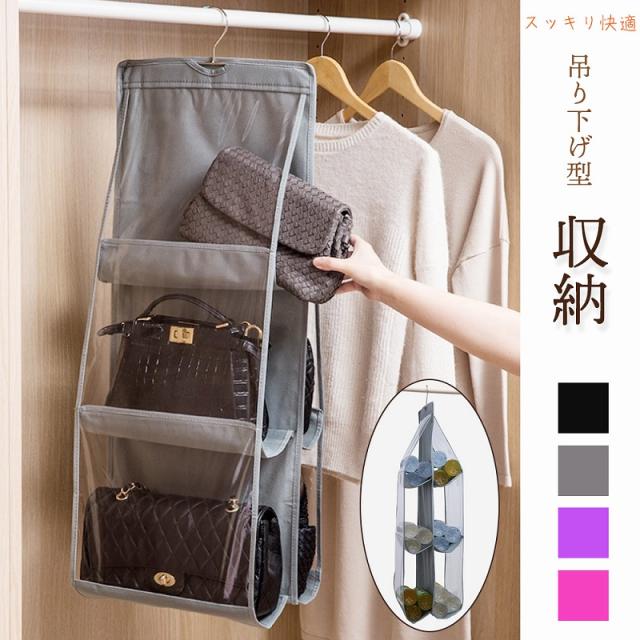バッグ収納 吊り下げ型 ラック クローゼット スッキリ ハンガー 衣類 小物 バッグ 浮かせる収納 中身が分かる 3段式 6ポケット 通気性 省スペース 整理整頓 人気 agesugi_snk