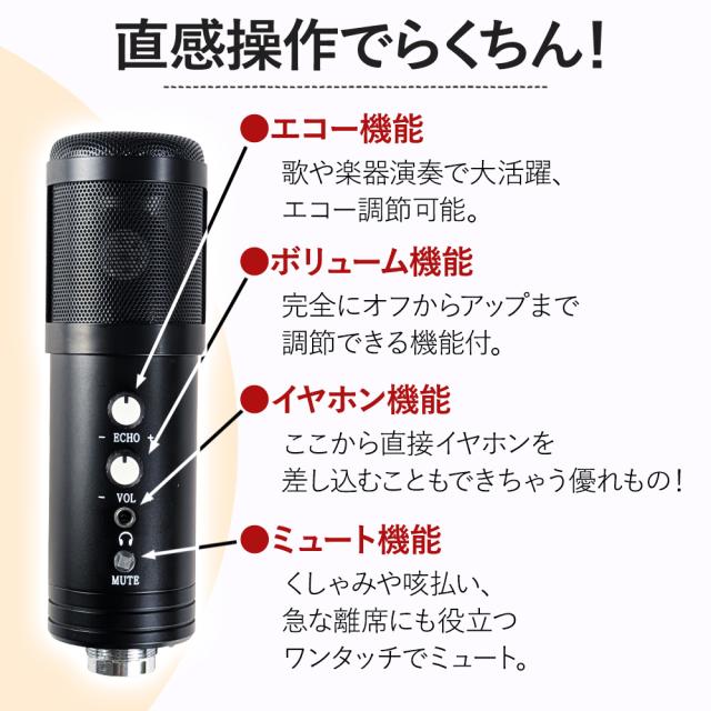 コンデンサーマイク USB式 高音質 ノイズキャンセル ノイズキャンセリング エコー ミュート スタンド ゲーム実況 生放送 生配信 Vtuber TRPG PC 弾き語り 人気 agesugi_sog