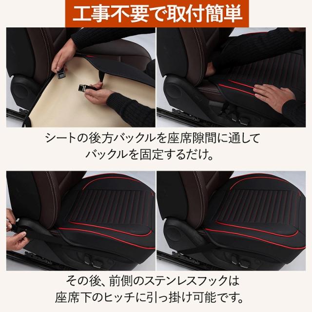 | 商品の説明 | 傷つきにくいから、車を守る。 ハサミでひっかいても、穴が開かない耐久性。 大事な車を傷から守る、盾としても優秀なシートです! 高品質なPUレザーと快適なスポンジ製を丁寧に縫製。 長時間の運転も、ストレスなく快適に過ごせます。 人の身体に寄り添った優秀な立体構造! 座り心地や悪いと姿勢が悪くなったり腰を痛めたり…。 ストレスをためず健康的に運転ができるこだわりの3D立体構造を実現。 ニオイの気になるデリケートな車内。 うっかり牛乳をこぼしてしまっても防水シートなのでさっとひと拭きでOK! 動物病院や予防注射でワンちゃんたちを車に乗せるという方にも安心。 外からの汚れやうんちもカバーして爪による傷から車を守ってくれます。 シートの後方バックルを座席隙間に通してバックルを固定するだけ。 その後、前側のステンレスフックは座席下のヒッチに引っ掛け可能◎ |