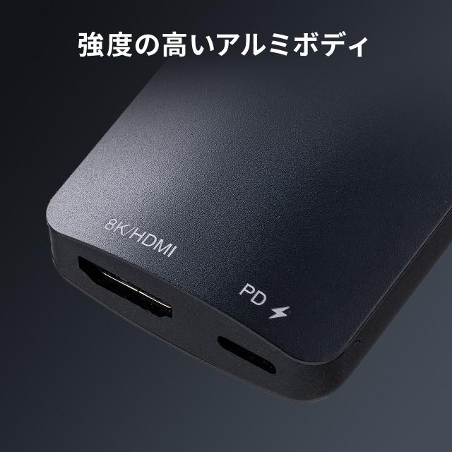 USB Type-C HDMI 変換アダプタ 8K/60Hz 4K/144Hz PD100W ケーブル長20cm MacBook iPad Pro Air Switch 対応 HDR ブラック[500-KC041]