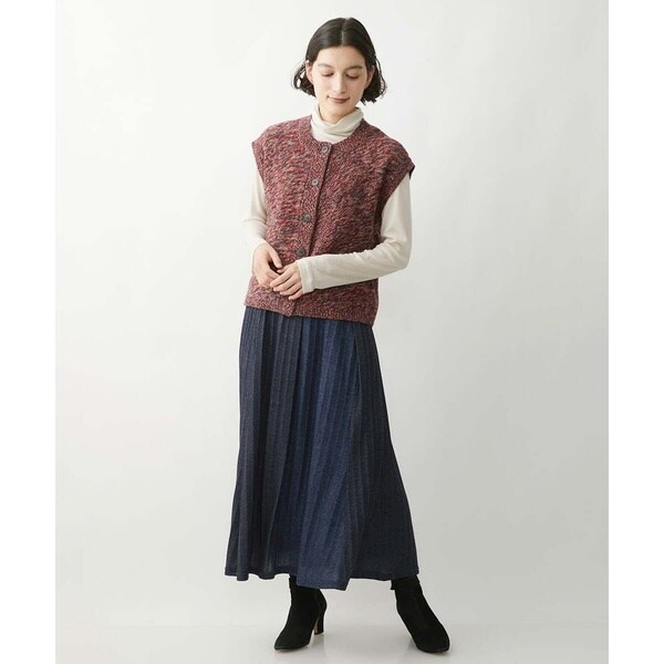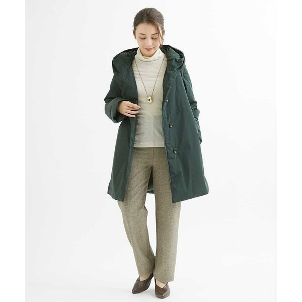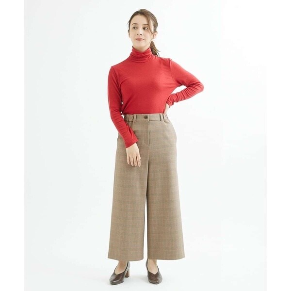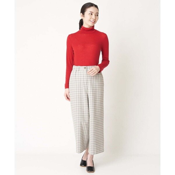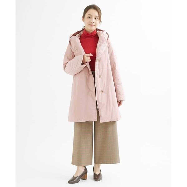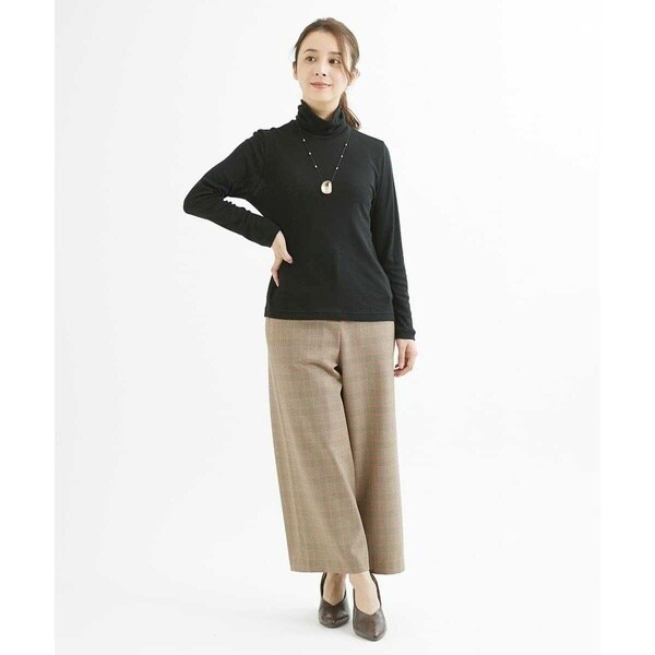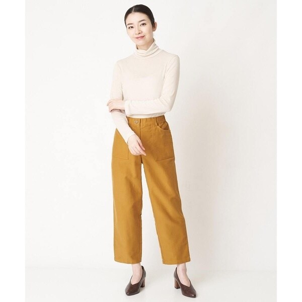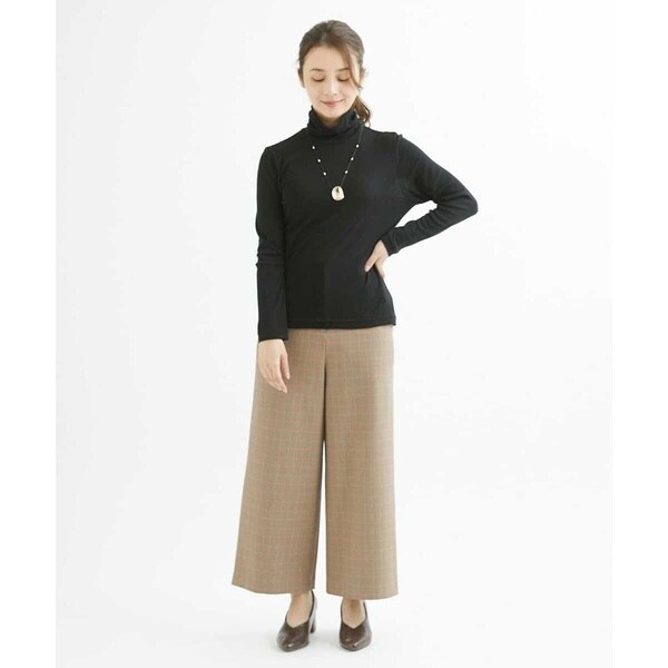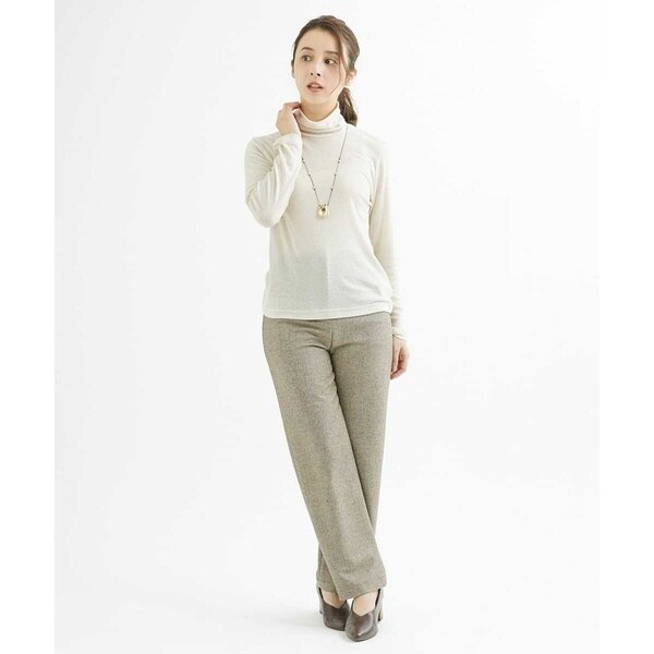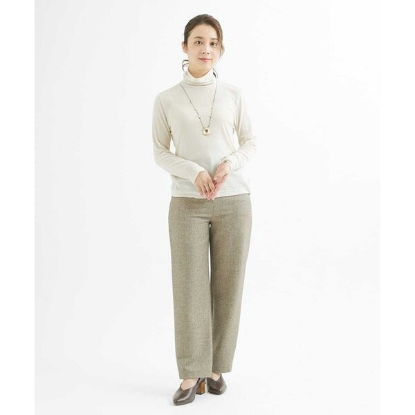 すっきりとしたシルエットなので、ニットやカーディガンとのレイヤードスタイリングにぴったり。折り返しても、くしゅくしゅっとニュアンスを出しても決まる長めのハイネックが合わせやすい一枚です。