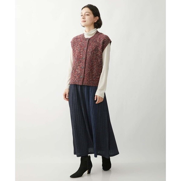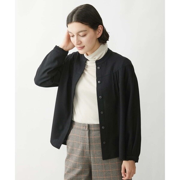肌寒い秋から春先まで長く着用いただける素材感もポイントです。ちょっと肌寒いときのコーディネートの困りごとに役立つアイテムです。