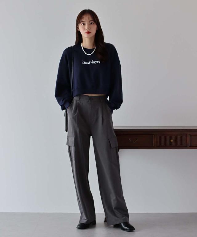 ブルーイースト(BLUEEAST)/Lunaロゴ刺繍クロップドスウェット