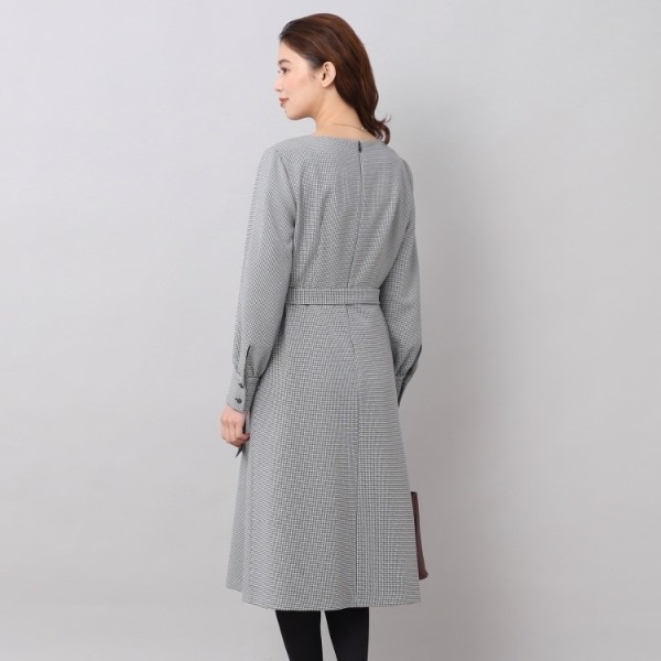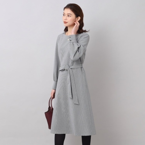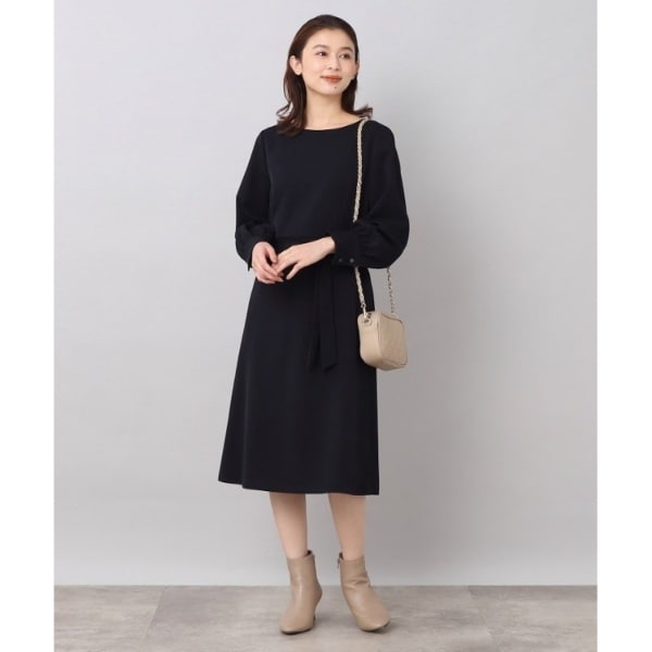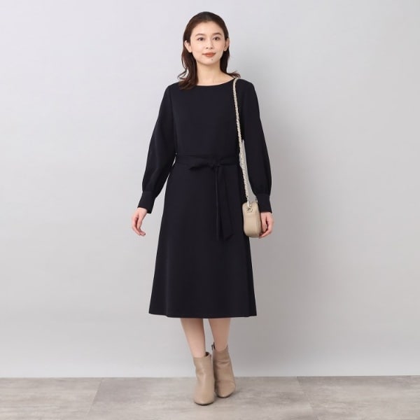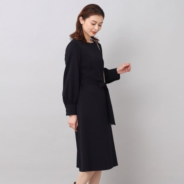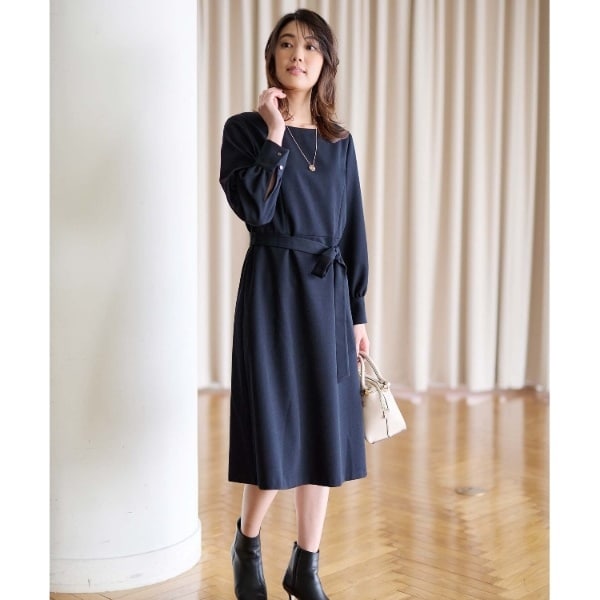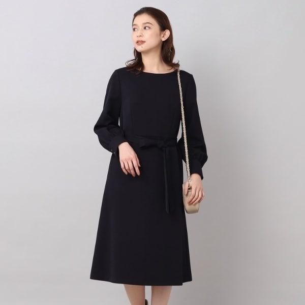 シンプルなデザインながらもサッシュベルトで全体のポイントに。