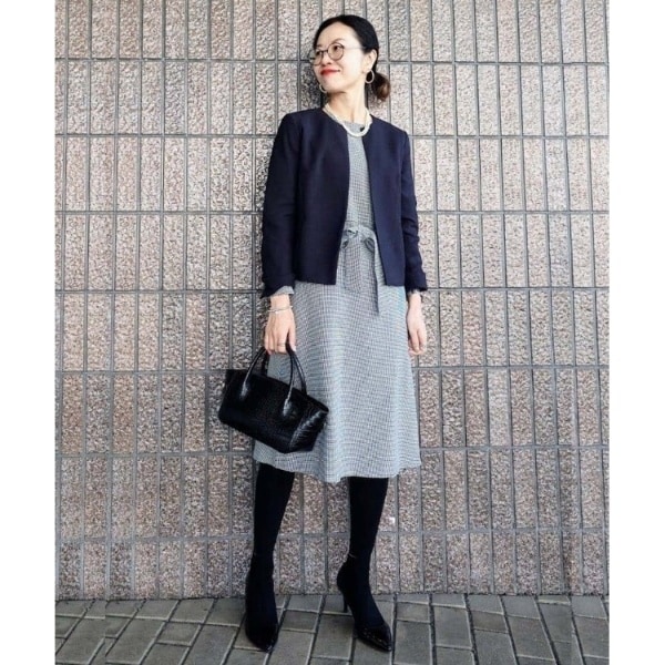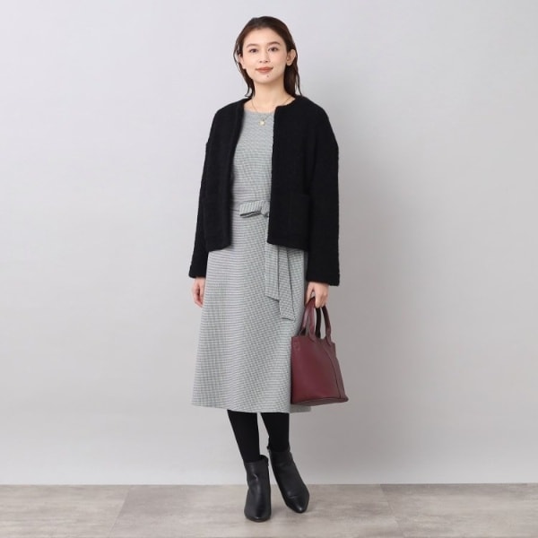 着丈の短めな、ジャケット、カーディガンとの相性が良いです。