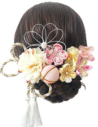 JZOON 髪飾り つまみ細工 七五三 成人式 浴衣 袴 着物 振袖 和装 花 水引 卒業式 結婚式 鈴付き 手作り