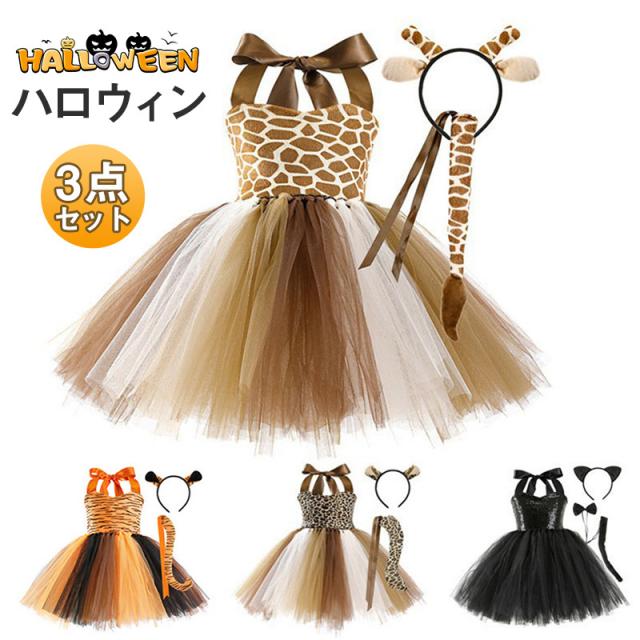 ハロウィン 衣装 子供 黒猫 キャット コスプレ 女の子 動物 コスチューム かわいい キリン トラ 魔女 仮装 変装 パーティー