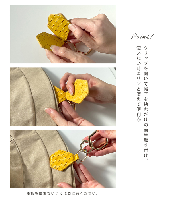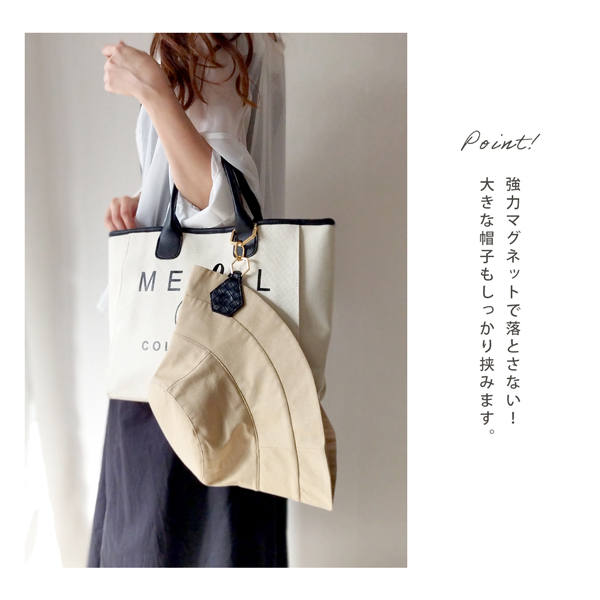 外出先での帽子や手袋をバッグに下げて持ち歩けます!