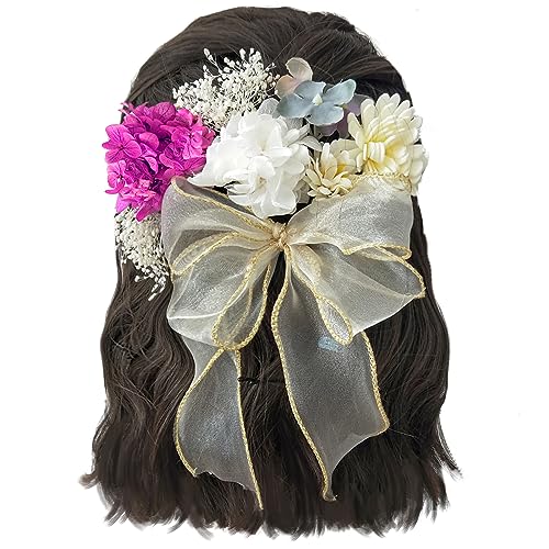 JZOON 9色展開 リボン 髪飾り ドライフラワー ダリア 造花飾り 和玉 赤 ヘアアクセサリー 成人式 水引 振袖 着物 卒業式 七五三 浴